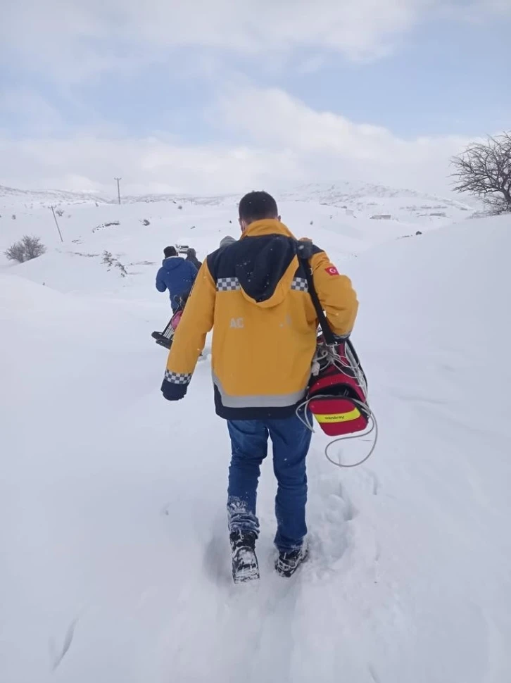 Bingöl’de köyünde rahatsızlanan 115 yaşındaki hastaya karlı yolları aşarak ulaşan sağlık ekipleri, yaşlı adamı hastaneye kaldırdı.