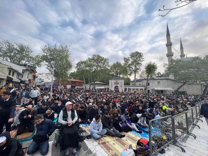 Türkiye’nin ve dünyanın farklı bölgelerinden gelen pandemi nedeniyle hep birlikte bayram namazı kılamayan on binlerce vatandaş, bayram namazı için Eyüp Sultan Camii’ni doldurdu. Tek yürek halinde saf tutan müminler, Eyüp Sultan Hazretleri’nin manevi huzurunda bayram