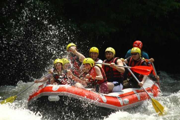 Rafting yapanlar adrenalin dolu anlar yaşamanın yanı sıra eğlenmeyi de ihmal etmiyor.
