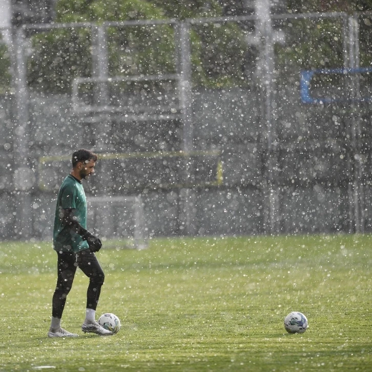 Bursaspor yeni sezon hazırlıklarına bu akşam yaptığı antrenmanla devam etti. Yeşil-beyazlı futbolcular sağanak yağmur altında hünerlerini sergilerken, gösterdikleri mücadele teknik heyeti memnun etti.