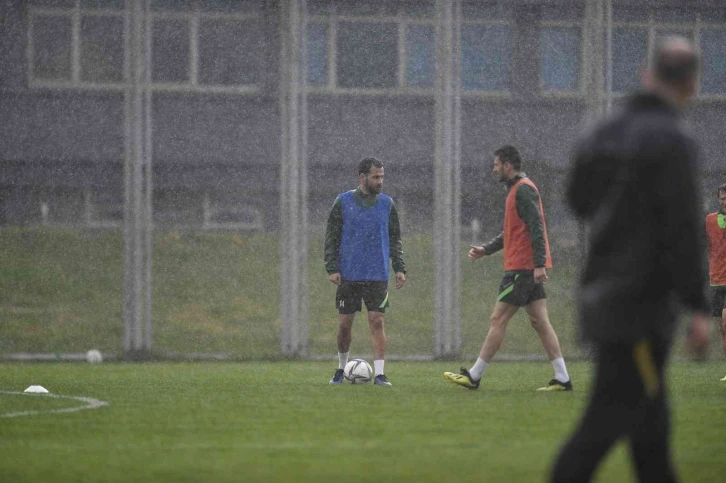 Bursaspor yağmur altında taktik çalışma gerçekleştirdi. Kocaelispor maçı hazırlıklarını sürdüren yeşil-beyazlı takımın antrenmanı 1 saat 20 dakika sürdü.