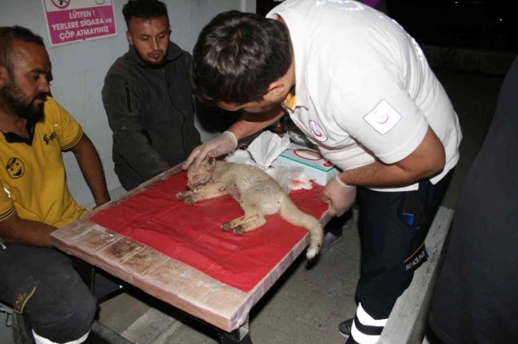 Aracın çarpması sonucu yaralanan yavru tilki, 112 acil servis istasyonunda görevli sağlık görevlileri tarafından yarası temizlendi.
