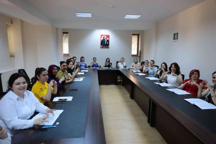 Eğitim çalışmasıyla Büyükşehir Belediyesinin hizmet birimlerine gelen işitme engelli vatandaşlarla iletişimin daha kolay ve hızlı olacağını kaydeden İnsan Kaynakları ve Eğitim Dairesi Başkanı Yelda Çetin, “Bu amaçla engelli vatandaşlarımızla iletişim halinde olan birimlerde görev yapan personelimize yönelik işaret dili eğitimi düzenlendik. Eğitimin hayırlı olmasını diliyorum” dedi.