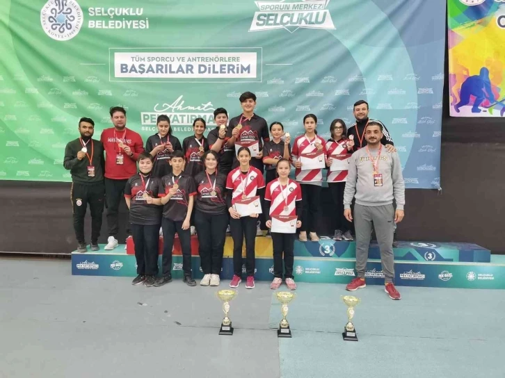 Pamukkale Belediyespor’un kadrosunda bulunan sporcular Konya’da düzenlenen Okul Sporları Türkiye Şampiyonası’nda zirveye ambargo koydu. Sporcular, iki kategoride Türkiye Şampiyonluğu ve bir kategoride de Türkiye ikinciliği elde etti. Pamukkale Belediyespor’un aktif olduğu branşlardan darttan başarılar gelmeye devam ediyor. Mavi-beyazlı kulüpte spor yaşamını sürdüren isimler hafta sonunda Konya’da yapılan Okul Sporları Türkiye Dart Şampiyonası’nda mücadele verdi. Daha önce Denizli’de yapılan il birinciliği ve bölge şampiyonalarında başarılı olarak ülke çapında ilk 20 takım arasına kalan okullarda yer alan sporcular Türkiye Şampiyonası’nda zirveye adeta ambargo koydu. Yıldız Erkekler kategorisinde mavi-beyazlı kulübün sporcularının oluşturduğu Harun Salih Turgut, Eyüp Güler, Kerem Kurban, Yusuf Kaan Can’dan oluşan Tekkeköy Ortaokulu Erkek takımı finalde kayseri temsilcisini 3-0 yenerek Türkiye Şampiyonu oldu. Yıldız Kızlar kategorisinde Pamukkale Belediyespor’un sporcuları Zehra Gemi, Elif Öz, Ayeşgül Karagöz ve Ceylinsu Sönmez’den oluşan Tekkeköy Ortaokulu, yine Pamukkale Belediyespor’un oyuncuları Ceylin Ataş, Esma Doğan, Pınar Önay ve Eylül Önay’dan oluşan Yatağan Ortaokulu’nu 3-2 yenerek Türkiye Şampiyonu oldu. Bu sonuçlarla Pamukkale Belediyespor’un oyuncuları 2 Türkiye Şampiyonluğu ve bir de Türkiye ikinciliği elde etmiş oldu. Okul Sporları Türkiye Şampiyonası’nda dereceye giren takımlara ödülleri düzenlenen törenle verildi.