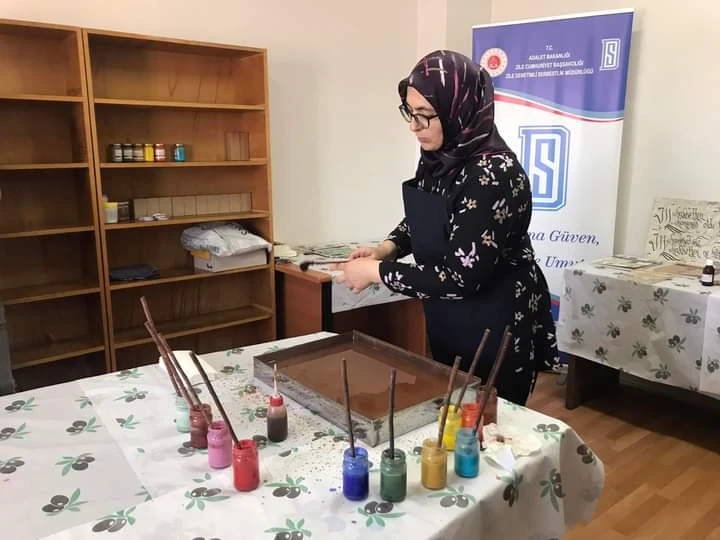 Zile Denetimli Serbestlik Müdürlüğü bünyesinde denetim gören yükümlülerin boş zaman etkinlikleri kapsamında ‘Ebru Etkinliği’ düzenlendi.