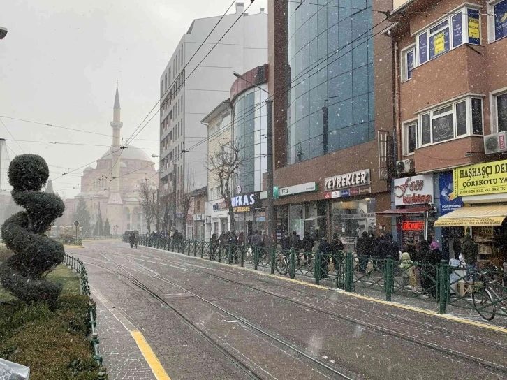 Eskişehir’de öğle saatlerinde başlayan kar yağışı aralıklarla devam ediyor.