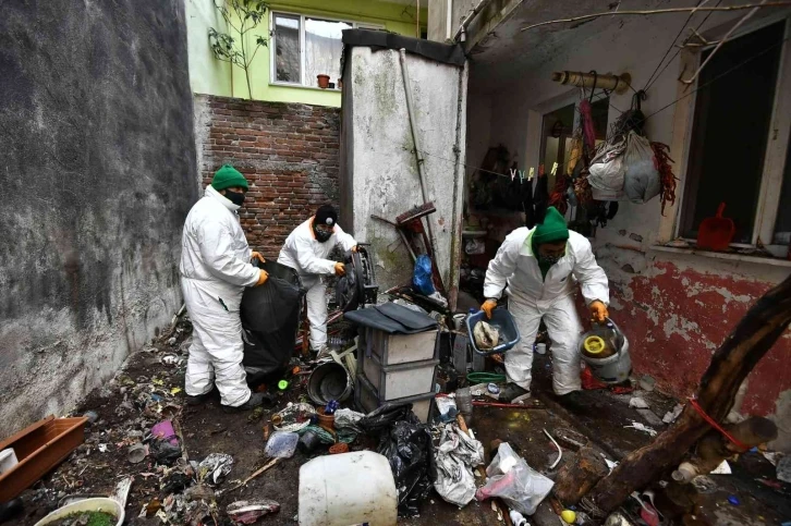Selamet Mahallesi 14. Güzel Sokak’ta bulunan bir evden çevreye yayılan kötü koku üzerine mahalle sakinleri, Osmangazi Belediyesi’ne şikayette bulundu. Osmangazi Belediyesi Temizlik İşleri ve Zabıta Müdürlüğü ekipleri, ihbar üzerine belirtilen adrese gitti. Metin Kurt isimli vatandaşa ait olan eve giren ekipler, evin her odasının da çöplerle dolu olduğunu gördü. Evin temizlenmesi için çalışma başlatan ekipler, uzun uğraşlar sonucu evden 3 kamyon dolusu çöp çıkarttı. Belediye ekipleri tarafından tamamen boşaltılan ev, ilaçlanarak dezenfekte edildi.
