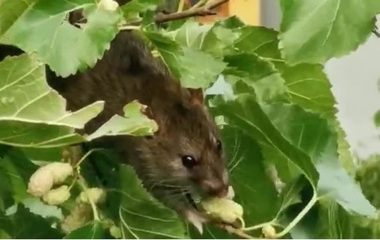 Artvin’in Borçka ilçesinde bir dut ağacının tepesinde dut yerken görülen fare görenleri şaşırttı.