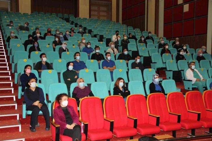 Konferans salonunda yapılan eğitime çok sayıda sağlık çalışanı katıldı.