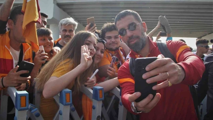 Spor Toto Süper Lig’in 34. hafta maçında Galatasaray, yarın Altay’a konuk olacak. Alsancak Mustafa Denizli Stadyumu’nda oynanacak mücadele saat 20.30’da başlayacak. Maç öncesinde Galatasaray kafilesi, saat 17.00 sıralarında havayoluyla İzmir’e ulaştı. Sarı-kırmızılı ekibi, Adnan Menderes Havalimanı’nda Galatasaraylı taraftarlar karşılarken takım kaptanı Arda Turan’a taraftarların ilgisi yoğun oldu. Sarı-kırmızılı ekibin kaptanı Arda Turan, kendisine ilgi gösteren taraftarlara imza verirken, birlikte fotoğraf çekildiler.