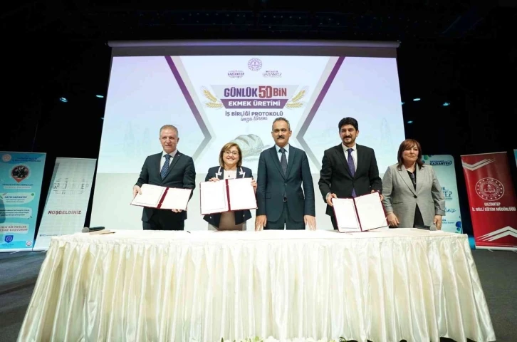 Gaziantep Büyükşehir Belediyesi tarafından halkın uygun fiyata kaliteli ekmeğe ulaşımını sağlayacak “Gazi Ekmek Projesi” çerçevesinde meslek liselerinin fırınlarında günlük 50 bin ekmek üretimi yapılmasını öngören protokol, Milli Eğitim Bakanı Mahmut Özer’in katılımıyla imzalandı. Protokol imza töreninde konuşan Milli Eğitim Bakanı Mahmut Özer, yıllardır birçok hizmeti ücretsiz veren meslek liselerinin şimdi de halk için ekmek ürettiğini vurguladı.