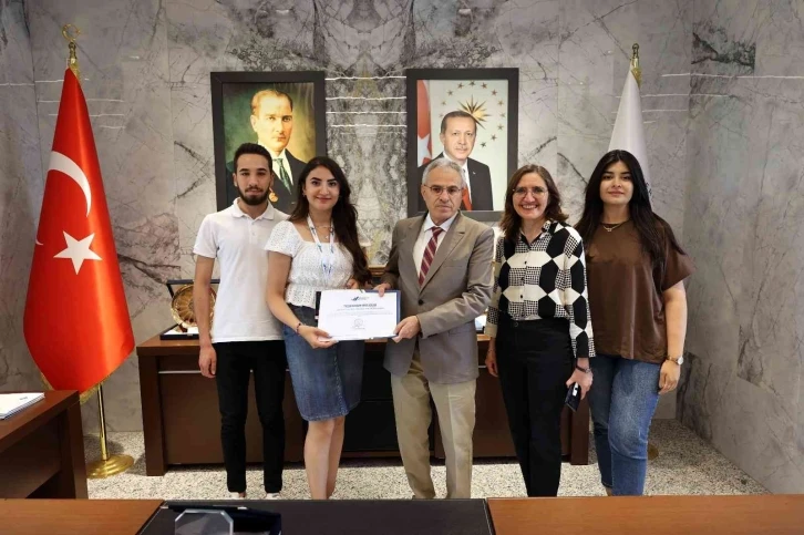 Gaziantep Üniversitesini Genç Kalite Topluluğu (GAÜN GENÇKAL) Akademik Danışmanı Öğr. Gör. Gaye Ayrancıoğlu, GAÜN Kalite Güvence Birim Koordinatörü Öğr. Gör. Derya Özçalışkan, Kalite Topluluğu Kurucu Başkanı Hatice Kübra Erdoğan ve topluluk kurul üyeleri GAÜN Rektörü Prof. Dr. Arif Özaydın’ı makamında ziyaret ederek, başarılarını Rektör Prof. Dr. Özaydın ile paylaştı.