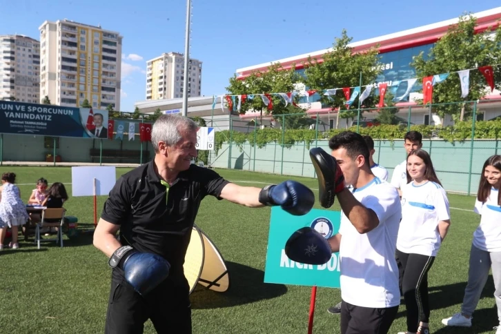 Şahinbey Belediyesi Yaz Spor Okulları programına katılan Şahinbey Belediye Başkanı Mehmet Tahmazoğlu, başta gençler olmak üzere 7’den 77’ye herkesi spor yapmaya davet etti.
