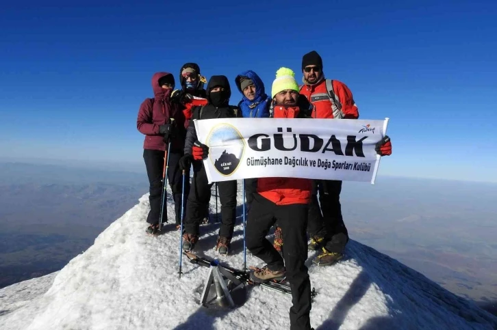Gümüşhane Dağcılık, Doğa Sporları ve Gençlik Derneği (GÜDAK) üyesi 2’si kadın, 8 sporcu Türkiye’nin ek yüksek noktası olan Ağrı Dağına başarılı bir zirve tırmanışı gerçekleştirdi.