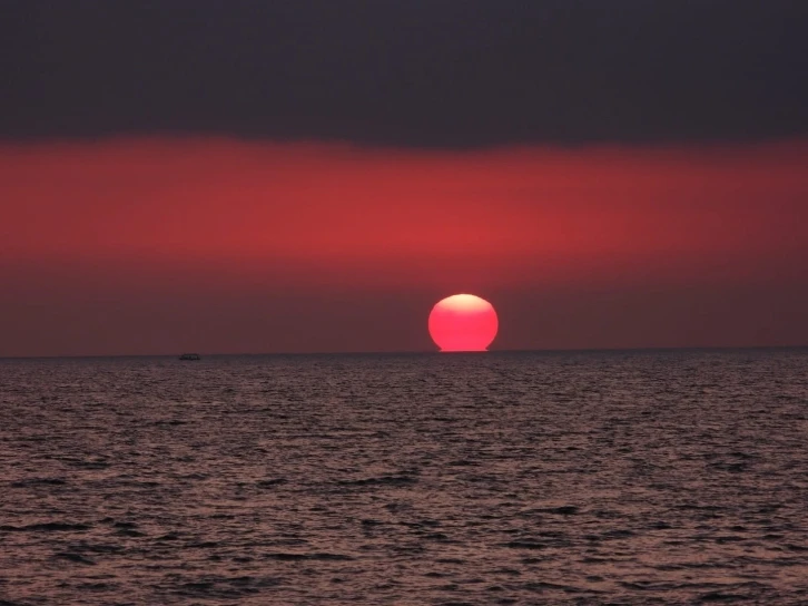 Hatay’ın Samandağ ilçesinde yaşanan gün batımı görenleri hayran bıraktı. Dünyanın en uzun sahillerinden biri olan Samandağ sahilinde gün batımıyla birlikte kızıla bürünen gökyüzünde kartpostallık görüntüler oluştu. Samandağ sahilinde gün batımıyla birlikte gökyüzü kızıla büründü. Bulutların arasından yansıyan güneş ışınları görsel bir şölen oluştururken, gün batımıyla teknelerin birleşimi kartpostallık görüntüler ortaya çıkarttı.