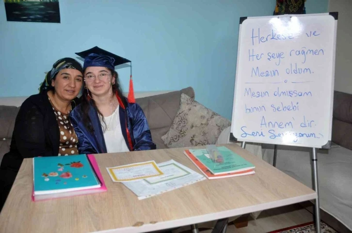 Hakkari’nin Yüksekova ilçesinde yaşayan özel gereksinimli öğrenci Şevval Yılmaz, tüm zorluklara ve her şeye rağmen annesinin desteğiyle liseden mezun oldu.