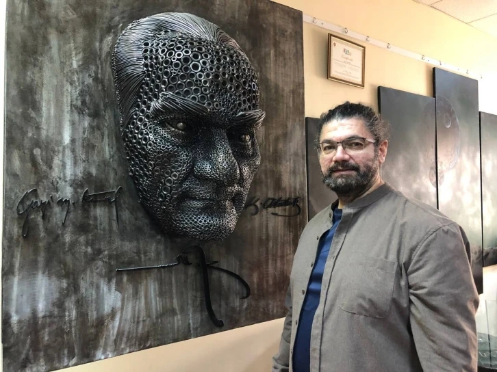 Heykel sanatçısı Keçeci 2 bin endüstriyel atıktan Atatürk portesi yaptı