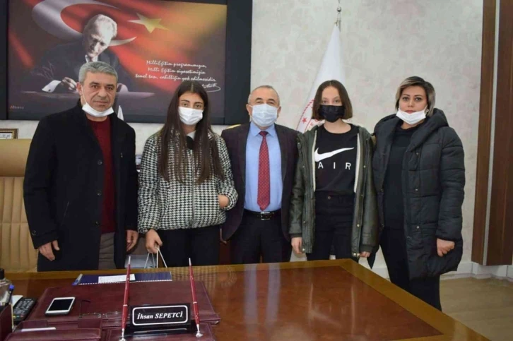Mehmetçik Ortaokulu Müdürü Ayhan Keyvanoğlu ve beden eğitimi öğretmeni Gülüstan Koşulan ile öğrencileri misafir eden İlçe Milli Eğitim Müdürü İhsan Sepetci, “Bu başarıda katkısı olan Beden Eğitimi Öğretmeni Gülüstan Koşulan, öğrencilerimiz Esma Nur Kocabaş ve Sude Keçelioğlu’nu tebrik ediyor, çalışmalarında başarılar diliyorum” dedi.