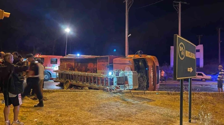Muğla’nın Bodrum ilçesinde otel yangınına giden itfaiye aracı kaza yaptı. 2 itfaiye eri yaralandı.