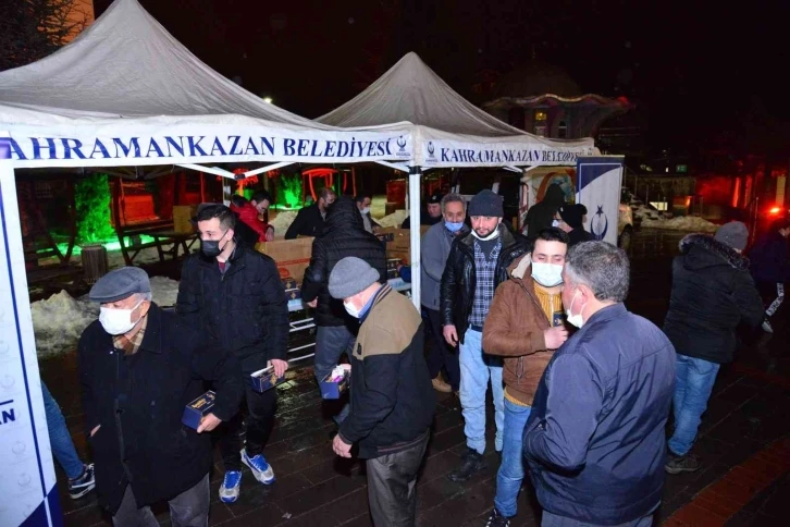 Kahramankazan Belediyesi ekipleri, Regaip Kandili dolayısıyla kandillerini kutladıkları vatandaşlara kandil simidi ikram etti.