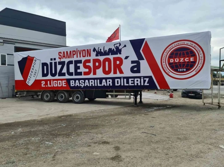 TFF 3. Lig 2. grupta bitime bir hafta kala şampiyonluğu garantileyen Düzcespor’a destekler devam ediyor. Düzce Merkez Bölgesi Kamyon ve Tır Taşıyıcılar Kooperatifi, şampiyon olan Düzcespor’a dev bir destek hazırladı. Tır dorsesine dev pankart yaptırarak Düzce sokaklarına gönderilen TIR’da ayrıca, sürücüler içinde uyarı yer aldı. “Bir Hareketine Bakar Hayat” sloganının yer aldığı pankartta sürücülere emniyet kemeri uyarısı yapılması da dikkat çekti.