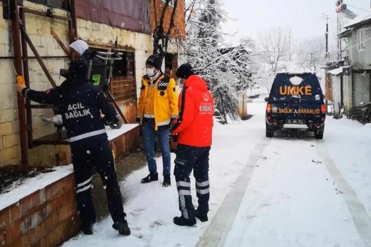 Kar sebebiyle ulaşıma kapanan köydeki diyaliz hastasının yardımına UMKE yetişti