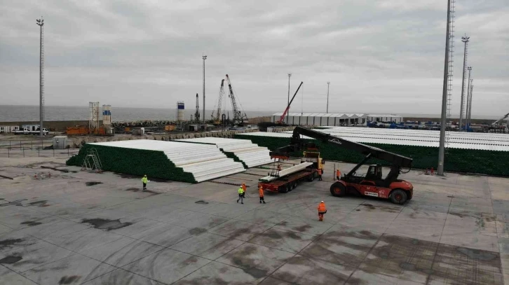 Karadeniz’de bulunan 540 milyar metreküplük doğalgazın karaya nakli için 170 kilometrelik hatta doğalgaz boruları döşenecek. Boruların denize indirilmesi için 13 Haziran günü Cumhurbaşkanı Recep Tayyip Erdoğan’ın da katılımıyla tören düzenlenmesi bekleniyor. Öte yandan doğalgazın ana dağıtım hattına bağlanması için karada da boru döşeme çalışmaları başladı.