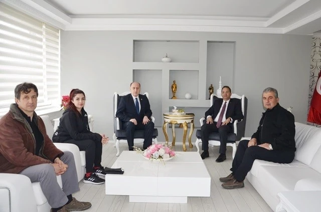 Milli sporcu Bilge Alev, Kaymakamı Cevdet Ertürkmen’i makamında ziyaret etti. Ziyarette, Antrenörü Murat Gürsel, Bafra Belediyesi Gençlik Spor Kulübü Yönetim Kurulu Başkanı Yusuf Danışmaz ve Bilge Alev’in babası Erol Alev de hazır bulundu.
