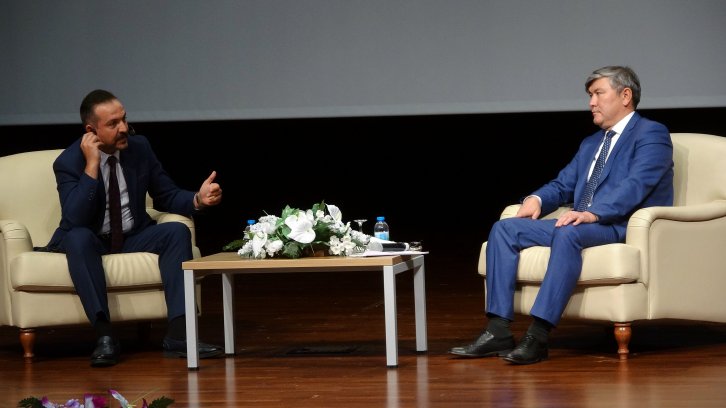 Yozgat Bozok Üniversitesi Kariyer Merkezi tarafından düzenlenen "Bir Diplomatın Başarı Öyküsü" konulu söyleşi programına katılan Kazakistan Cumhuriyeti Ankara Büyükelçisi Abzal Saparbekuly, öğrencilerle buluştu.