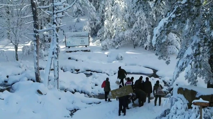 Kazdağları Milli Parkı’nın yüksek kesimlerinde kar yağışı nedeniyle yiyecek bulmakta zorlanan yaban hayvanları için doğaya yem bırakıldı. Doğa Koruma ve Milli Parklar (DKMP) Genel Müdürlüğü 2’nci Bölge Müdürlüğü’ne bağlı Balıkesir İl Şube Müdürlüğü ve Balıkesir İl Jandarma Komutanlığı Çevre, Doğa ve Hayvan Koruma Timi (HAYDİ) ekipleri, karlı dağ yollarında çoğu zaman yemleri sırtlarında taşıdı. Yaklaşık yarım ton ağırlığındaki yemlerin Tozlu mevkiine bırakılma anı drone kamerası ile havadan da görüntülendi.