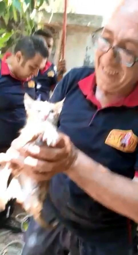 Kilis’te su kuyusuna düşen yavru kedi itfaiye tarafından kurtarıldı.