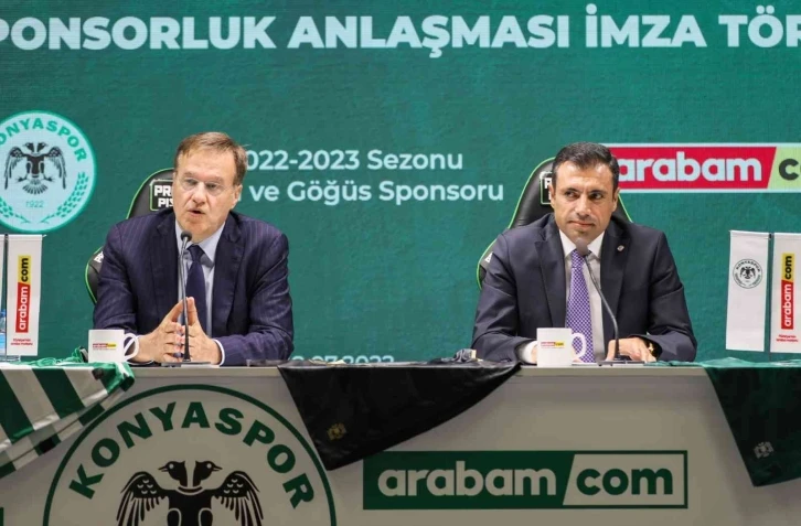 Konyaspor ile Arabam.com arasında yapılan forma ve isim sponsorluğu için imza töreni düzenlendi. Stadın toplantı salonunda gerçekleşen imza töreninde konuşan Konyaspor Kulübü Başkanı Fatih Özgökçen, "2022 - 2023 sezonunun başlamasına artık çok az bir süre kaldı. Tabii ki sezondan önce futbol takımımız perşembe günü Avrupa’daki ilk maçını oynayacak. Saat 22.00’de başlayacak yine gelecek hafta Perşembe günü de rövanş maçıyla inşallah iyi bir başlangıç ve devam etme gayreti içerisinde olacağız. Göreve geldiğimiz günden itibaren hep dile getirdik. Bu noktada yönetim kurulu üyelerimizle birlikte hummalı bir çalışma içerisine girdik. Bunlar arasında sponsorluk çalışmaları kombine biletleriyle alakalı neler yapılabilir? Konyaspor’a futbol takımına, spor kulübüne ilgi nasıl artırabiliriz? Bunların çalışmaları içerisine girdik. Bu noktada özellikle geçen seneden kaynaklı kısmen de olsa biz başarıyı hep öyle dillendiriyoruz. Konyaspor çünkü futbol takımı elbet bir gün mutlaka şampiyon olacaktır. Şampiyonluğa giden yoldaki her kademe kısmi bir başarıdır. Biz bunu böyle adlandırıyoruz. Kısmen de olsa geçen sezon başarılı olduğumuz bir dönemi yaşadık. Bunun da belki meyvelerini, sponsorluk çalışmalarında görüyoruz. Görmeye devam ediyoruz. Ciddi manada kulübümüze karşı söz konusu özellikle pandemi döneminde daralan futbol ekonomisini, futbol endüstrisini bu şekilde ayakta tutmak sponsorların destekleriyle vazgeçilmezdir. Bu sponsorluk faaliyetleri noktasında işte bugün de isim ve göğüs sponsoru olarak arabam.com markasıyla bir birlikteliğe başlayacağız. Ben bu birlikteliğin hayırlar getirmesini temenni ediyorum. Hem şehrimize hem takımımıza hem kulübümüze, hem futbol alemine inşallah güzel, istikrarlı, başarılı bir dönem geçirmemize vesile olur diyorum" dedi. "Burada ne kadar başarılı olursak ülke futboluna o kadar katkı sağlarız"