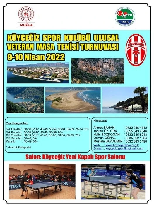 Muğla’nın Köyceğiz ilçesinde Veteranlar Masa Tenisi Turnuvası gerçekleştirilecek. İlk defa düzenlenecek olan Köyceğiz Spor Kulübü Veteranlar Masa Tenisi Turnuvası 09-10 Nisan 2022 tarihlerinde Köyceğiz Yeni Kapalı Spor Salonu’nda yapılacak. Köyceğiz Spor Kulübü Başkanı Tarkan Öztürk, “Turnuvamız, 09-10 Nisan 2022 (Cumartesi-Pazar) tarihlerinde, Köyceğiz Spor Kulübü tarafından Köyceğiz Kaymakamlığı, Muğla Gençlik ve Spor İl Müdürlüğü, Köyceğiz Belediyesi ve Muğla Büyükşehir Belediyesi’nin, katkısı ile Köyceğiz bin kişilik Yeni Kapalı Spor salonunda yapılacak. İlk defa düzenleyeceğimiz turnuvamız sırasında güzel ilçemizde hep birlikte mutlu anlar yaşayacağımızı düşünüyoruz” dedi.