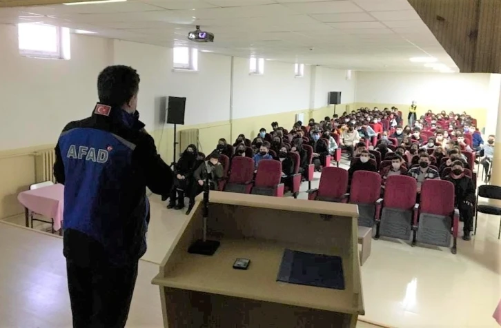 Erzincan Afet ve Acil Durum Müdürlüğü (AFAD) ekipleri, lise öğrencilerine ‘Afet Farkındalık ve Afet Gönüllülük Sistemi’ bilgilendirmesi eğitimi vererek farkındalık oluşturuyor.