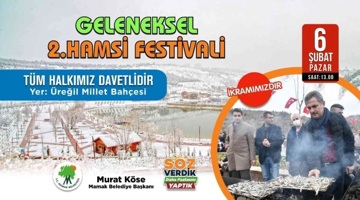 Mamak Belediyesi, Mamaklıları Geleneksel 2. Hamsi Festivali ile bir araya getirecek.6 Şubat Pazar günü saat 13.00’da, Ankara’nın ilk millet bahçesi olan Üreğil Millet Bahçesi’nde bu yıl ikincisi düzenlenecek festivalde vatandaşlar, çeşitli etkinliklerle güzel bir hafta sonu geçirmenin de keyfini yaşayacak. “Büyük bir aileyiz”