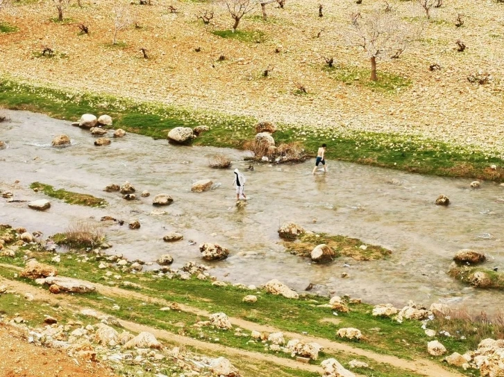 Mardin’de çocuklar soğuk havada derede yüzdü