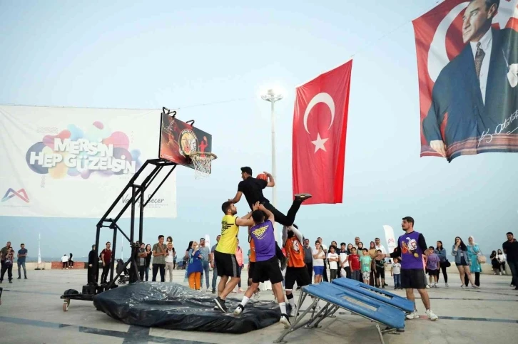Mersin büyükşehir belediyesinin, 19 mayıs atatürk’ü anma, gençlik ve spor bayramı dolayısıyla hafta boyu düzenlediği 'basketbol akrobasi şov', 'yelken gösterisi', 'dalgıç gösterisi', 'yamaç paraşütü' ve 'red bull half court 3x3 basketbol turnuvası' ile denizde, havada ve karada heyecan dolu dakikalar yaşandı.