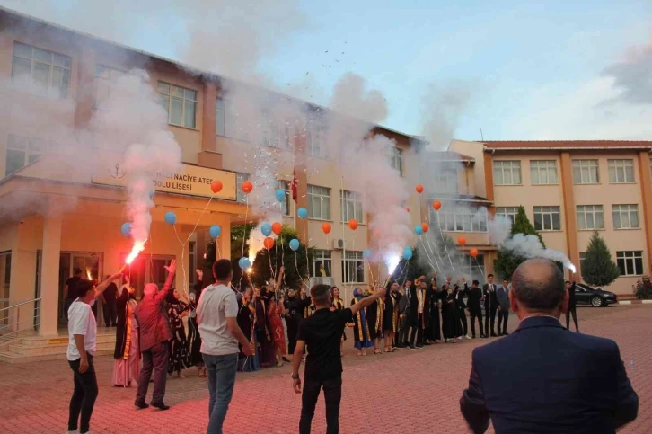 Malatya’nın Darende ilçesindeki Hacı Naciye Ateş Anadolu Lisesi’nin 15. mezuniyet töreninde öğrenciler meşale yakarak sevinçlerini gösterdi.