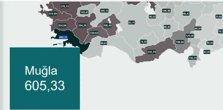 Muğla’da 25-31 aralık tarihleri arasında yüzde binde 188,25 olan vaka sayısı 1-7 ocak tarihleri arasında adeta tavan yaparak yüz binde 605,33’e yükseldi.