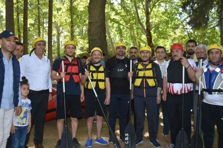 Mardin’in Nusaybin ilçesinde düzenlenen Okul Sporları 3. Bölge Rafting Müsabakaları başladı. Şampiyona startını veren Mardin Valisi ve Büyükşehir Belediye Başkan Vekili Mahmut Demirtaş ile Kaymakam ve Belediye Başkan Vekili Ercan Kayabaşı, rafting botunda yarışa katıldı.