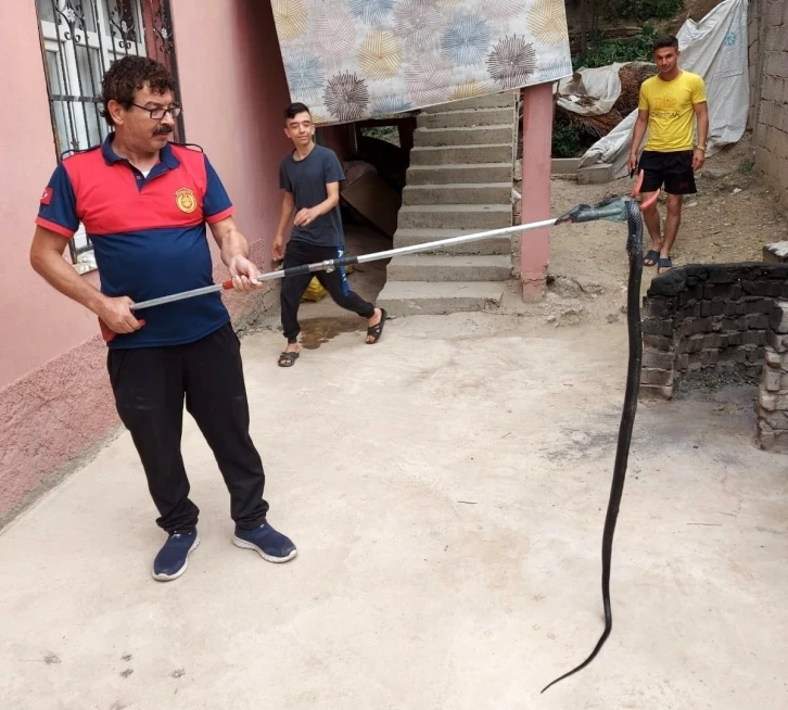 Osmaniye’nin Kadirli ilçesinde bir eve giren yılan itfaiye ekiplerince yakalanarak doğal yaşam ortamına salındı.