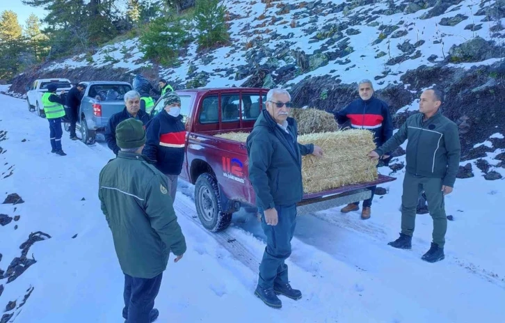 Osmaniye’nin yüksek kesimlerinde etkili olan kar yağışı sonrası yiyecek bulmakta zorlanan yaban hayvanları için Amanos Dağları’na yem bırakıldı.