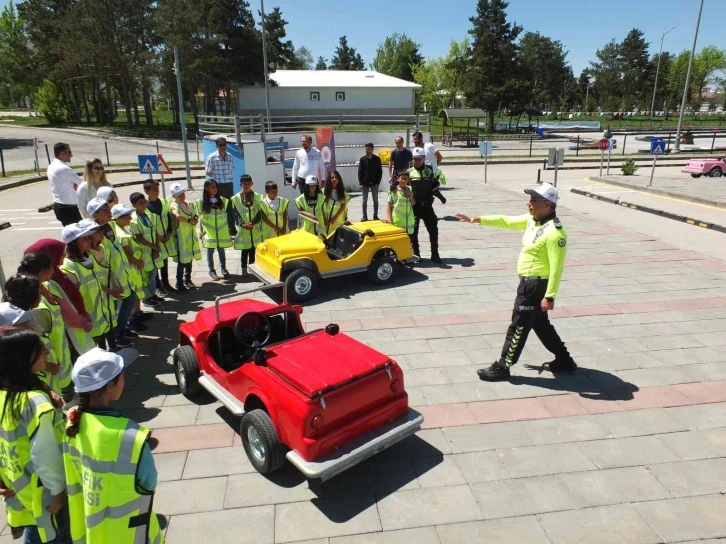 Erzurum’da çocuk trafik eğitim parkında 66 ilkokul öğrencisine ‘Yayalar İçin 5 Adımda Trafik Güvenliği’ çerçevesinde farkındalık eğitimi verildi.