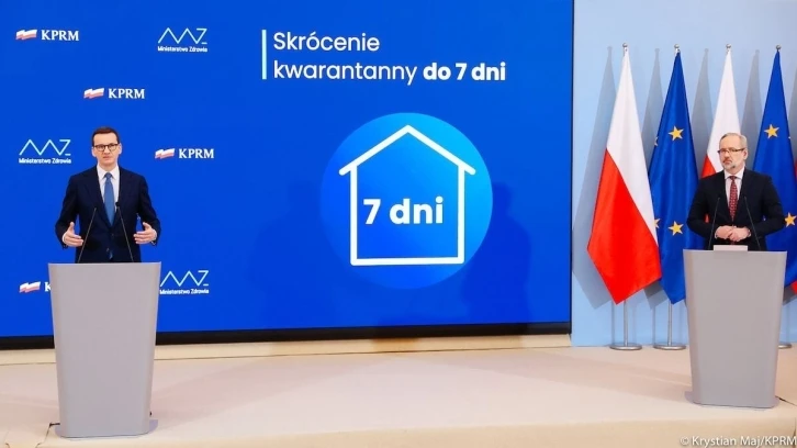 Korona virüs vakalarının her gün rekor kırdığı Polonya’da karantina süresi 7 güne düşürüldü. Polonya Başbakanı Mateusz Morawiecki, Sağlık Bakanı Adam Niedzielski ile birlikte düzenlediği basın toplantısında korona virüs ile mücadelede yeni önlemleri açıkladı. Pandemide beşinci dalganın başladığı ülkede her gün korona virüs vaka sayısında rekor kırılırken Başbakan Morawiecki, diğer ülkelerin deneyimlerinden yararlanarak karantina süresini 7 güne düşürdüklerini açıkladı. "Almanya, Fransa, Belçika, İtalya, Yunanistan da benzer çözümleri hayata geçirdi. Bu ülkelerin deneyimlerinden faydalanarak karantinayı 7 güne düşürüyoruz" diyen Morawiecki, söz konusu uygulamanın 24 Ocak Pazartesi gününden itibaren geçerli olacağını aktardı. Eczanelerde ücretsiz olarak korona virüs testi yapılabilecek
