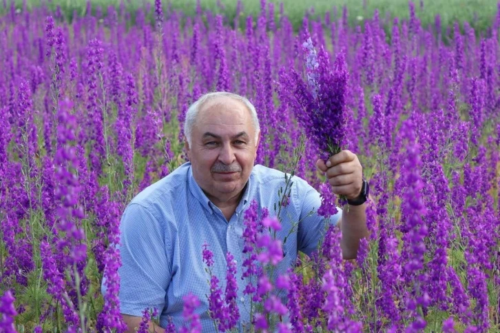 Şenkaya Turnalı köyünde sağanak sonrası tarlalarda mor çiçekler açtı.