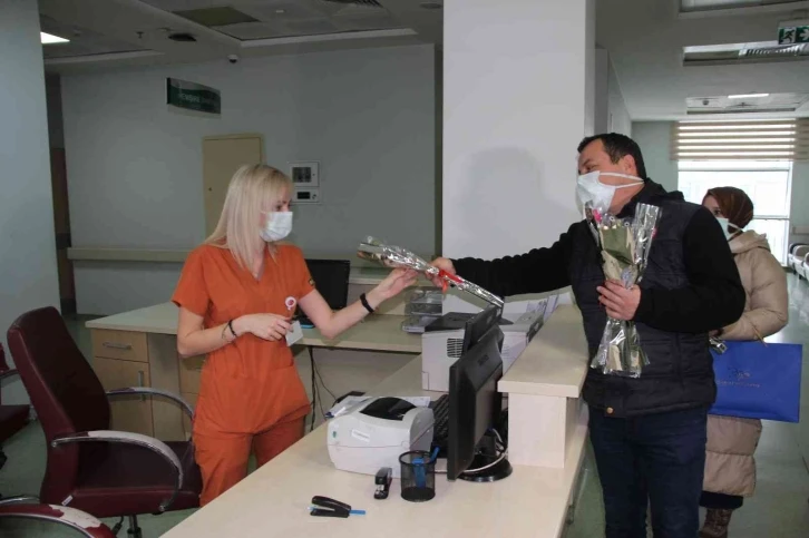 DÜZCE (İHA) – Düzce’de hasta yakınları, son günlerde sağlık çalışanlarına yönelik şiddete tepki göstermek için anlamlı bir etkinlik düzenledi. Bir araya gelen hasta yakınları, görevi başındaki sağlık çalışanlarına karanfil hediye etti.