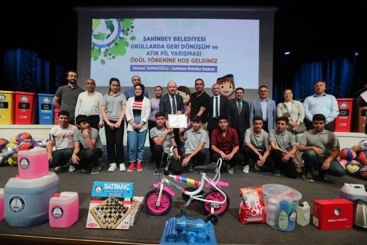 Şahinbey Belediyesi gelecek nesillere daha temiz bir dünya bırakmak adına 5-12 Haziran Dünya Çevre Günü ve Çevre Haftası etkinlikleri çerçevesinde geri dönüşüm ve atık pil toplama yarışmalarında dereceye giren okulları hediye yağmuruna tuttu. Tüm okullara temizlik malzemesi desteğinde bulunan Şahinbey Belediyesi geri dönüşüm projesiyle farklı kategorilerde dereceye giren okullara ihtiyaçlarına göre çeşitli destekler sağladı. “Çevremizi korumalıyız”