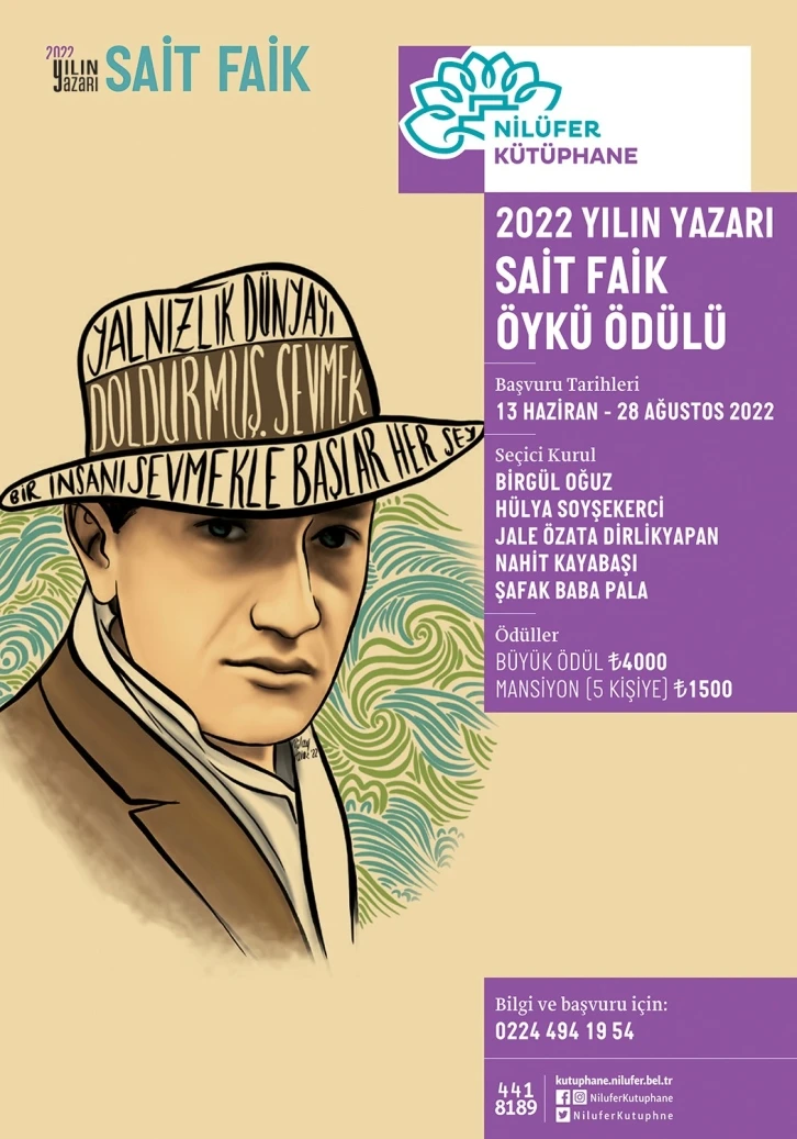 Nilüfer Belediyesi’nin Yılın Yazarı etkinlikleri çerçevesinde düzenlediği Sait Faik Öykü Ödülü Yarışması’na başvurular 13 Haziran’da başlıyor. Başvurular 26 Ağustos’a kadar devam edecek.