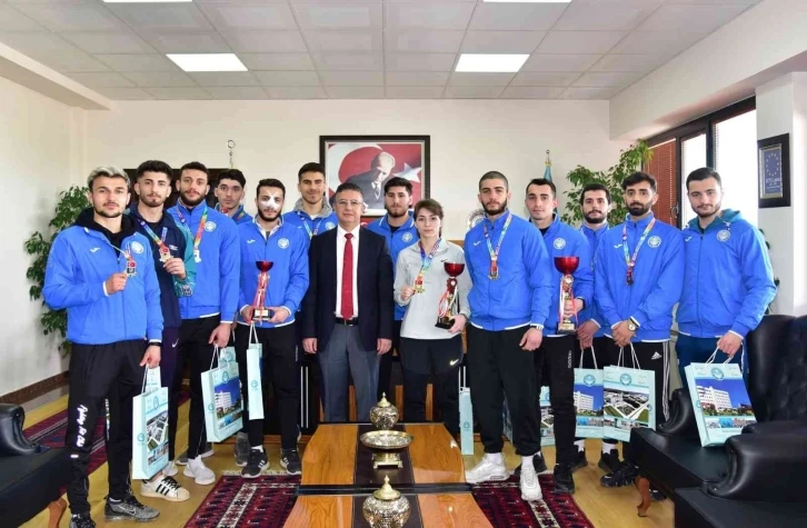 Rektör Prof. Dr. İlter Kuş, konuklarına ziyaretlerinden dolayı teşekkür ederek, elde edilen başarılı sonuçlar için tebrik ederken, sporcu öğrenciler de kendilerine gösterdiği ilgi ve destekleri dolayısıyla Rektör Prof. Dr. İlter Kuş’a teşekkür etti. Rektör Prof. Dr. Kuş: “Farklı Branşlarda Öncü Sporcuları Yetiştiriyoruz”