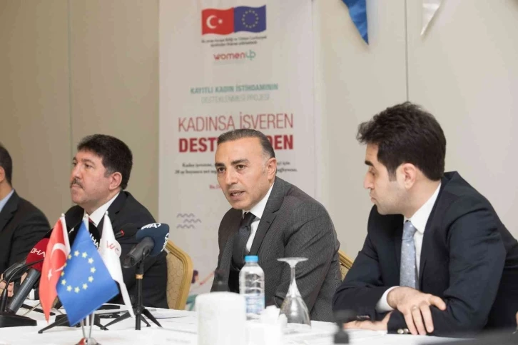 Projenin amacı hakkında açıklamalarda bulunan Ceylan, ”Bugün burada toplanmamızın sebebi olan ‘Women Up projesi de girişimci kadınları desteklemek rekabete daha dayanıklı hale getirmek ve temelde kayıtlı kadın istihdamını artırarak kayı dışı istihdam oranlarını düşürmek için hayata geçirilmiş Avrupa Birliği ile ortaklaşa Finanse edilen bir hibe projesidir. Projenin ana mantığı kadın işverenlerin ilave olarak istihdam edecekleri kadın işçiler üzerine kurgulanmıştır. Projenin kapsamında, özellikle küçük ölçekli işçi sayısı 9 ve daha aşağıda olan işverenler ilave kadın istihdamı sağlamak koşulu ile projeden faydalanacaktır” diye konuştu. “Kadınlarda istihdam oranı daha düşük”